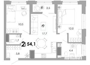 ![Комната в 2-к квартире, на длительный срок, 55м2, 2/16 этаж]()